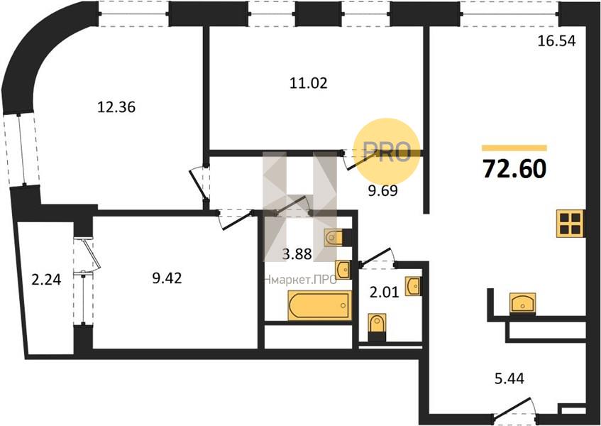 | Общая площадь: | 72.60 м2 |