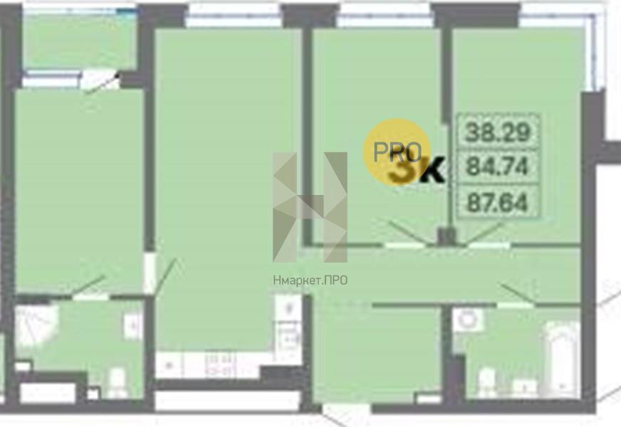 Квартира: 3 к 87,64 кв.м., 4 этаж в комплексе Авангард 3.0, 1 очередь, корп.1, сдача: 4кв. , этажей: 26, адрес Екатеринбург г., Раевского ул., , Застройщик: АтомСтройКомплекс.