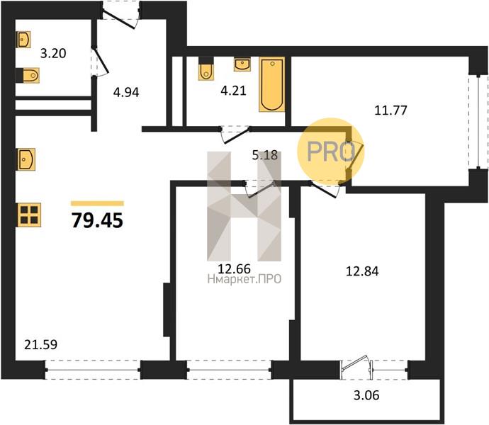 | Общая площадь: | 79.45 м2 |