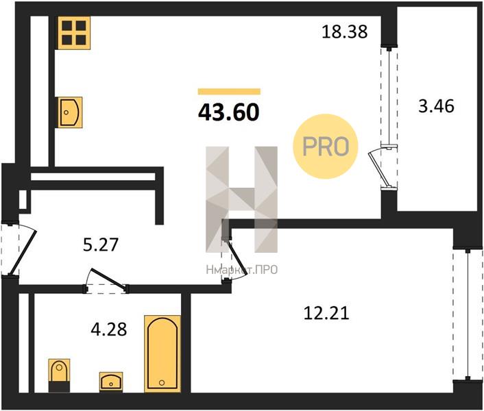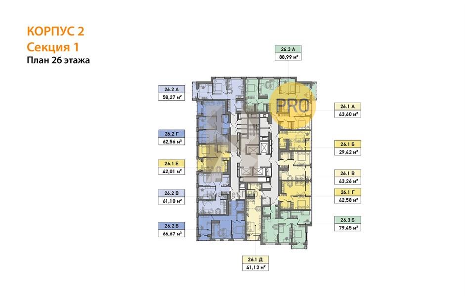Квартира: 1 к 43,60 кв.м., 26 этаж в комплексе Repin Towers, 2 очередь, корп.2, сдача: 2кв. , этажей: 29, адрес Екатеринбург г., Репина ул., , Застройщик: АтомСтройКомплекс, СКМ Девелопмент.