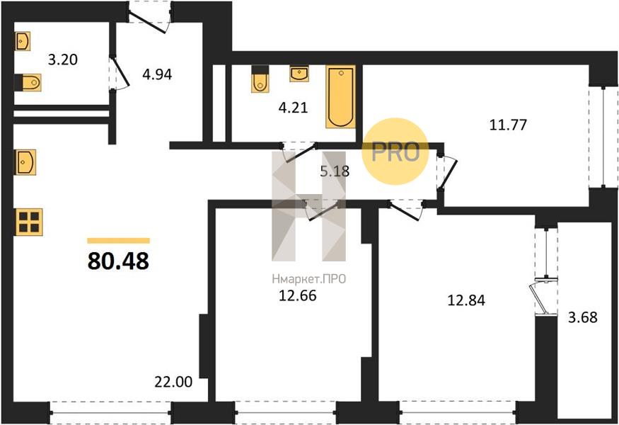 Квартира: 3 к 80,48 кв.м., 5 этаж в комплексе Repin Towers, 2 очередь, корп.2, сдача: 2кв. , этажей: 29, адрес Екатеринбург г., Репина ул., , Застройщик: АтомСтройКомплекс, СКМ Девелопмент.