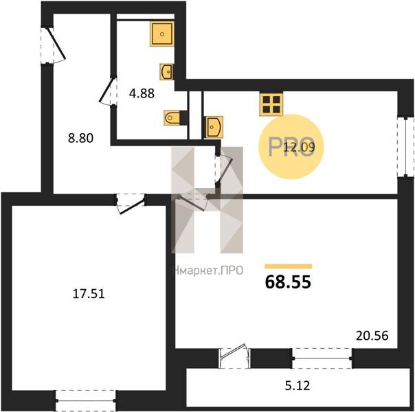 | Площадь кухни: | 12.09 м2 |