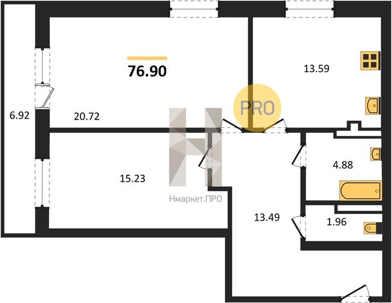 Квартира: 2 к 76,90 кв.м., 17 этаж в комплексе Огни Исети, 1 очередь, корп.1, сдача: 3кв. , этажей: 20, адрес Екатеринбург г., Рощинская ул., д. 59, Застройщик: Огни Исети.