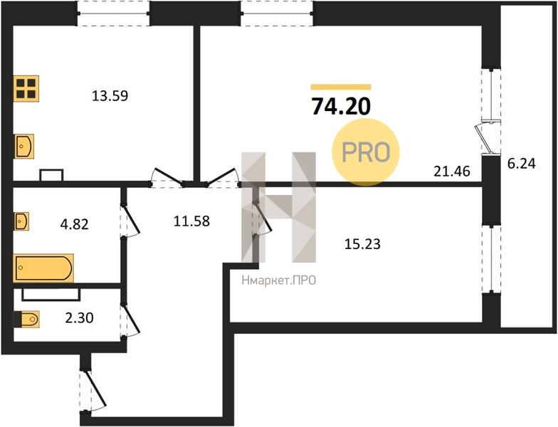 | Общая площадь: | 74.20 м2 |
