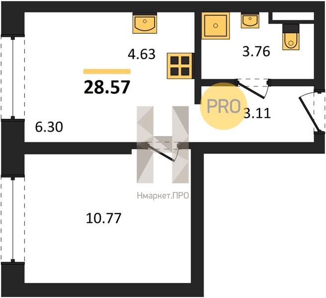 Квартира: 1 к 28,57 кв.м., 7 этаж в комплексе Уральский сад, 2 очередь, корп.Квартал Парковый, сдача: 4кв. , этажей: 21, адрес Совхозный п., Ротная ул., , Застройщик: Страна Девелопмент.