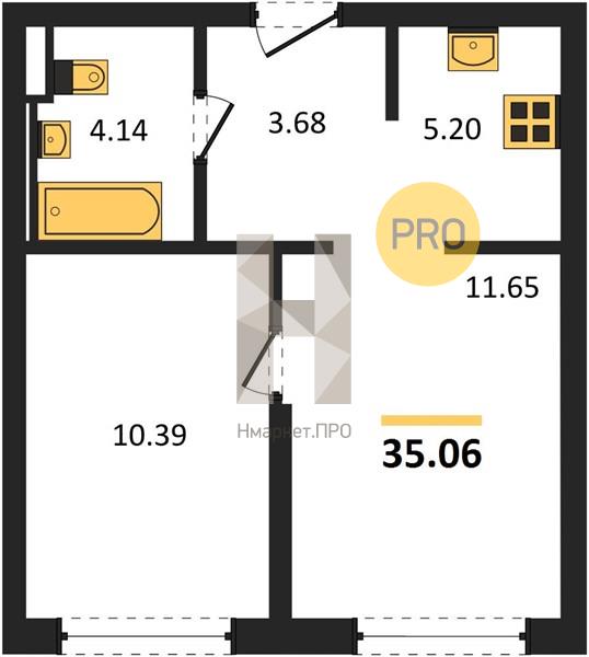 Квартира: 1 к 35,06 кв.м., 11 этаж в комплексе Уральский сад, 2 очередь, корп.Квартал Парковый, сдача: 4кв. , этажей: 21, адрес Совхозный п., Ротная ул., , Застройщик: Страна Девелопмент.