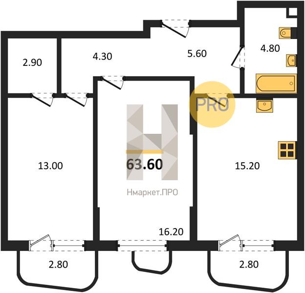 | Общая площадь: | 63.60 м2 |