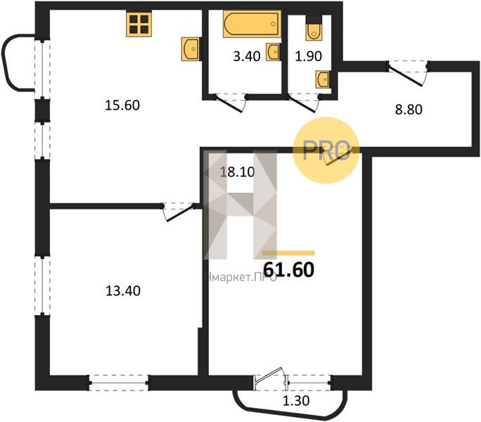 Квартира: 2 к 61,60 кв.м., 2 этаж в комплексе Солнечный, 7 очередь, корп.11.2, сдача: 3кв. , этажей: 16, адрес Екатеринбург г., Счастливая ул., д. 11.2, Застройщик: ГК ЭТАЛОН.