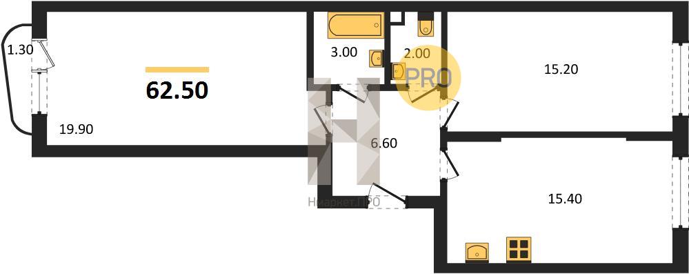 | Общая площадь: | 62.50 м2 |