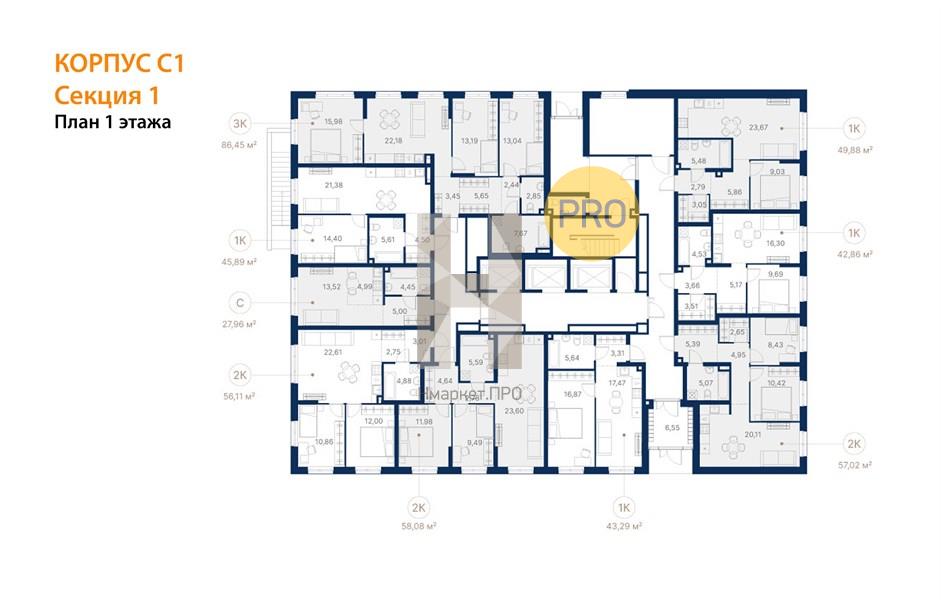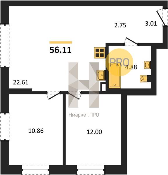 Квартира: 2 к 56,11 кв.м., 1 этаж в комплексе Ривер Парк, 4 очередь, корп.С1, сдача: 3кв. , этажей: 25, адрес Екатеринбург г., Щербакова ул., , Застройщик: ATLAS Development.