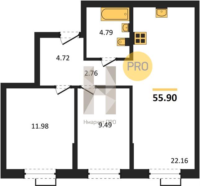 Квартира: 2 к 55,90 кв.м., 15 этаж в комплексе Ривер Парк, 4 очередь, корп.С1, сдача: 3кв. , этажей: 25, адрес Екатеринбург г., Щербакова ул., , Застройщик: ATLAS Development.
