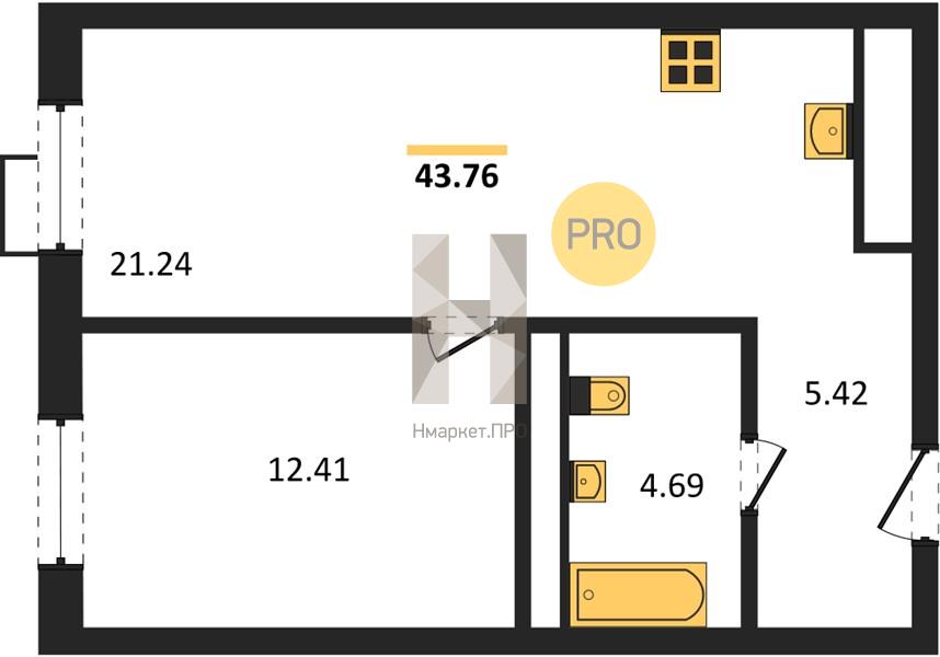 | Общая площадь: | 43.76 м2 |