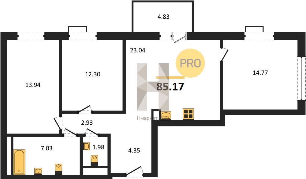 Квартира: 3 к 85,17 кв.м., 25 этаж в комплексе Ривер Парк, 4 очередь, корп.С1, сдача: 3кв. , этажей: 25, адрес Екатеринбург г., Щербакова ул., , Застройщик: ATLAS Development.
