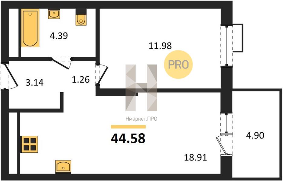Квартира: 1 к 44,58 кв.м., 25 этаж в комплексе Ривер Парк, 4 очередь, корп.С1, сдача: 3кв. , этажей: 25, адрес Екатеринбург г., Щербакова ул., , Застройщик: ATLAS Development.