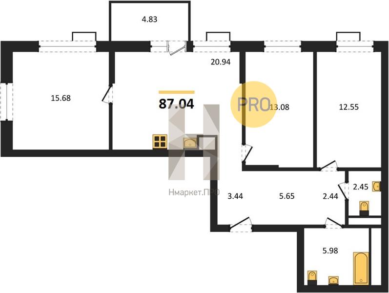 | Общая площадь: | 87.04 м2 |