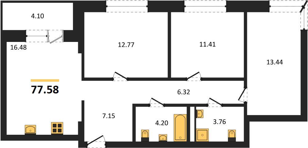 Квартира: 3 к 77,58 кв.м., 1 этаж в комплексе Ривер Парк 3, 3 очередь, корп.2, сдача: 2кв. , этажей: 24, адрес Екатеринбург г., Щербакова ул., , Застройщик: Призвание.