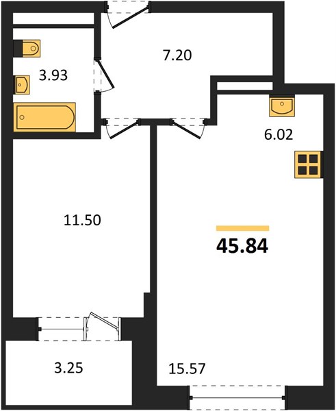 | Общая площадь: | 45.84 м2 |