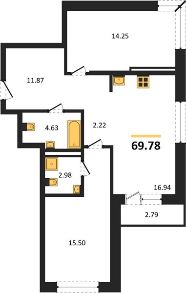 Квартира: 2 к 69,78 кв.м., 22 этаж в комплексе Ривер Парк 3, 3 очередь, корп.2, сдача: 2кв. , этажей: 24, адрес Екатеринбург г., Щербакова ул., , Застройщик: Призвание.