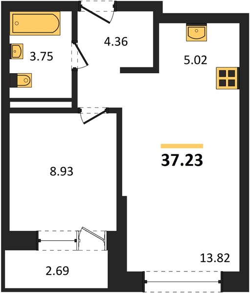 Квартира: 1 к 37,23 кв.м., 24 этаж в комплексе Ривер Парк 3, 3 очередь, корп.2, сдача: 2кв. , этажей: 24, адрес Екатеринбург г., Щербакова ул., , Застройщик: Призвание.