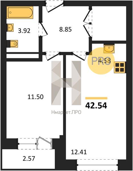 Квартира: 1 к 42,54 кв.м., 1 этаж в комплексе Ривер Парк 3, 3 очередь, корп.2, сдача: 2кв. , этажей: 24, адрес Екатеринбург г., Щербакова ул., , Застройщик: Призвание.