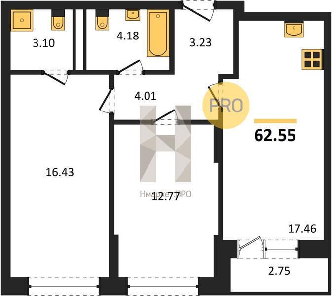 Квартира: 2 к 62,55 кв.м., 1 этаж в комплексе Ривер Парк 3, 3 очередь, корп.2, сдача: 2кв. , этажей: 24, адрес Екатеринбург г., Щербакова ул., , Застройщик: Призвание.