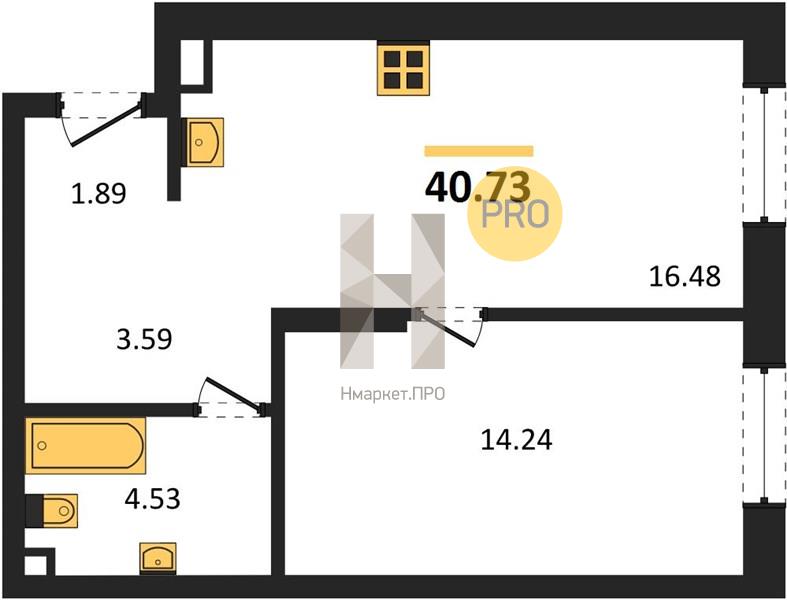 Квартира: 1 к 40,73 кв.м., 1 этаж в комплексе Ривер Парк, 4 очередь, корп.С2, сдача: 3кв. , этажей: 25, адрес Екатеринбург г., Щербакова ул., , Застройщик: ATLAS Development.
