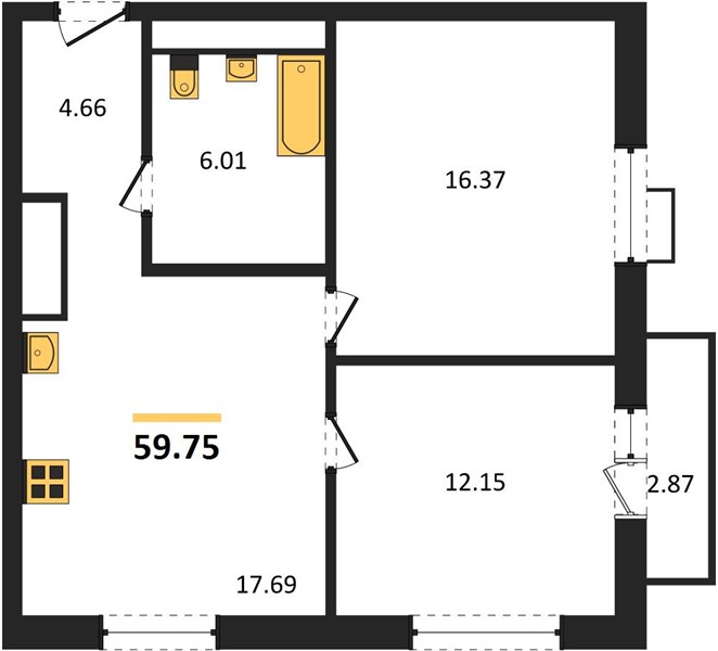 | Общая площадь: | 59.75 м2 |