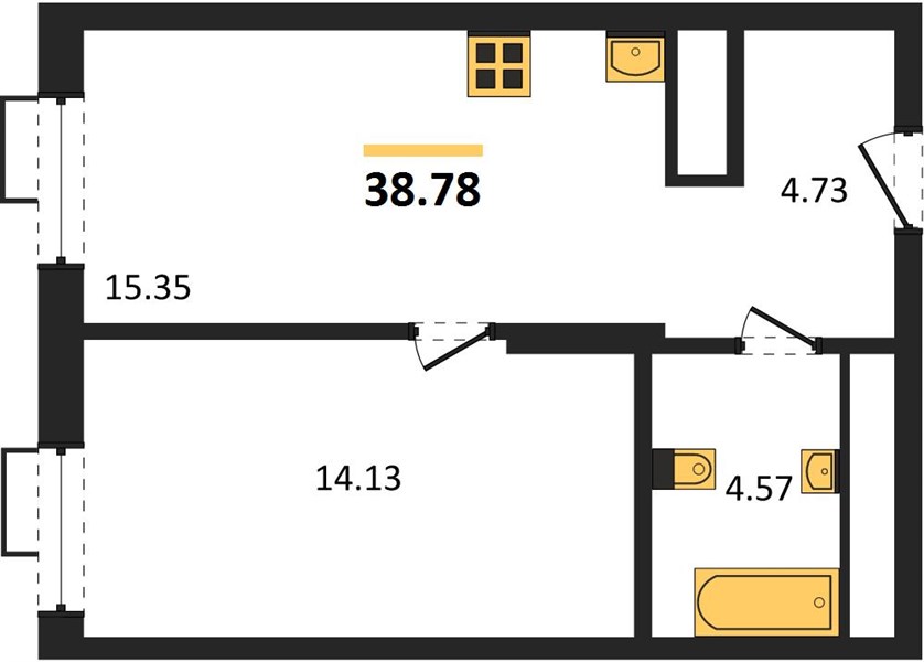 Квартира: 1 к 38,78 кв.м., 14 этаж в комплексе Ривер Парк, 4 очередь, корп.С2, сдача: 3кв. , этажей: 25, адрес Екатеринбург г., Щербакова ул., , Застройщик: ATLAS Development.