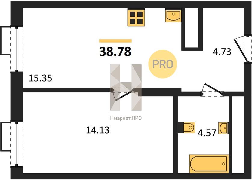 Квартира: 1 к 38,78 кв.м., 19 этаж в комплексе Ривер Парк, 4 очередь, корп.С2, сдача: 3кв. , этажей: 25, адрес Екатеринбург г., Щербакова ул., , Застройщик: ATLAS Development.
