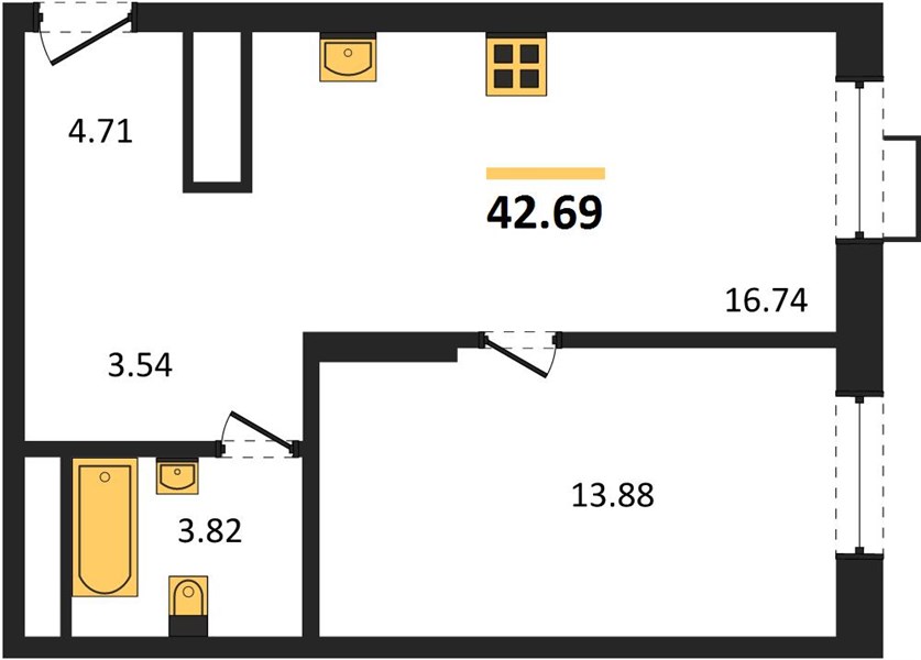 | Общая площадь: | 42.69 м2 |