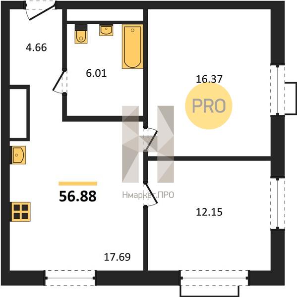 Квартира: 2 к 56,88 кв.м., 3 этаж в комплексе Ривер Парк, 4 очередь, корп.С2, сдача: 3кв. , этажей: 25, адрес Екатеринбург г., Щербакова ул., , Застройщик: ATLAS Development.