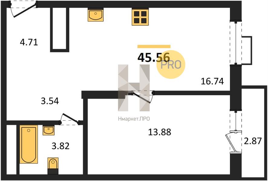 Квартира: 1 к 45,56 кв.м., 5 этаж в комплексе Ривер Парк, 4 очередь, корп.С2, сдача: 3кв. , этажей: 25, адрес Екатеринбург г., Щербакова ул., , Застройщик: ATLAS Development.