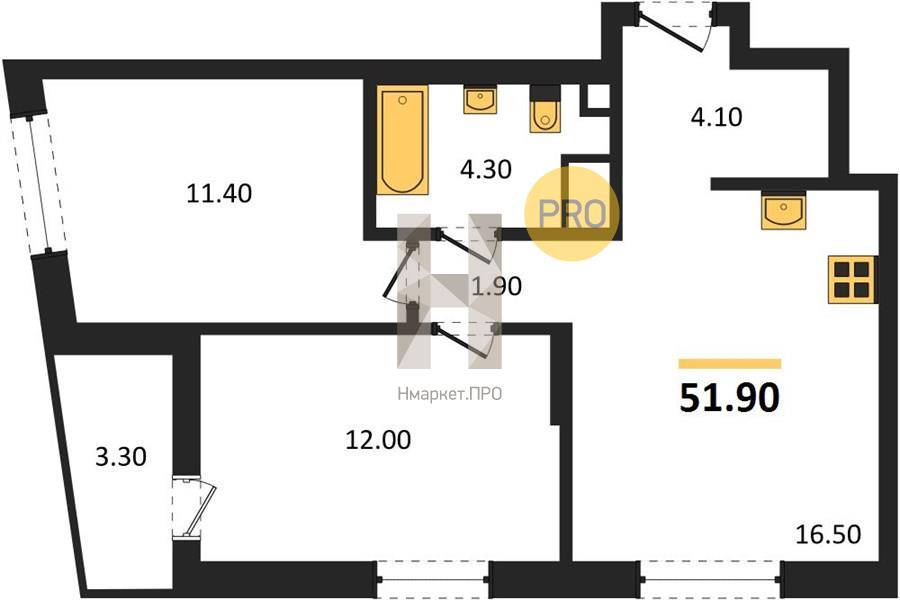 | Общая площадь: | 51.90 м2 |