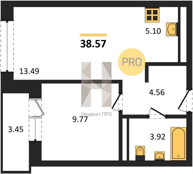 | Общая площадь: | 38.57 м2 |