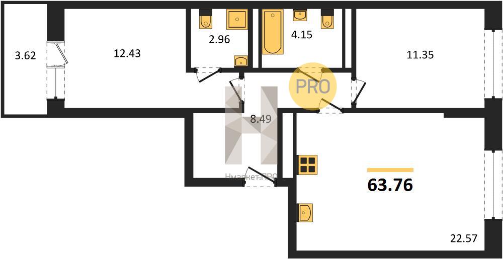 | Общая площадь: | 63.76 м2 |