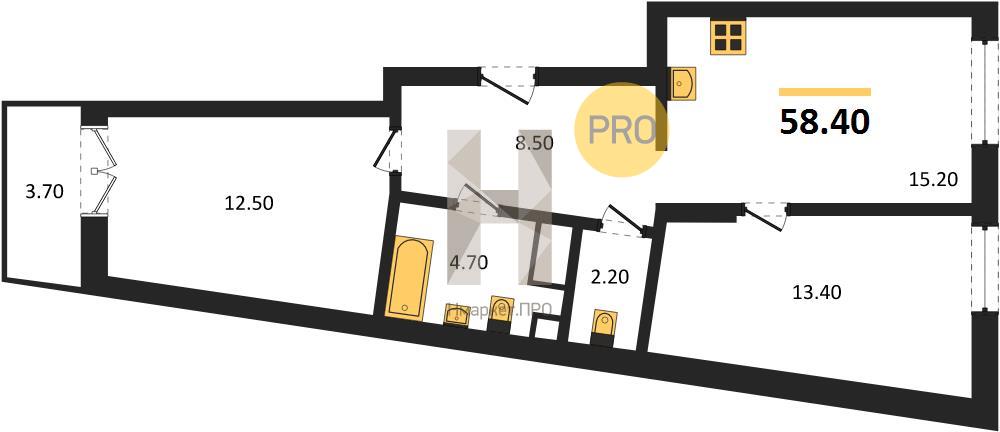 Купить 2-комнатную квартиру, 58.40 м2 № 7191426