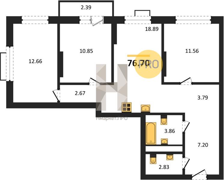 Квартира: 3 к 76,70 кв.м., 18 этаж в комплексе Ривер Парк, 4 очередь, корп.С3, сдача: 3кв. , этажей: 25, адрес Екатеринбург г., Щербакова ул., , Застройщик: ATLAS Development.