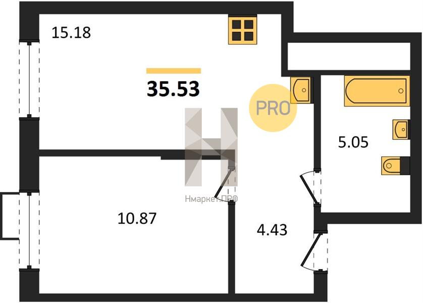 Квартира: 1 к 35,53 кв.м., 21 этаж в комплексе Ривер Парк, 4 очередь, корп.С3, сдача: 3кв. , этажей: 25, адрес Екатеринбург г., Щербакова ул., , Застройщик: ATLAS Development.