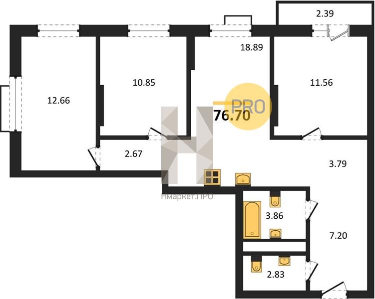 | Общая площадь: | 76.70 м2 |