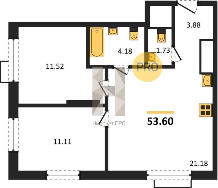 Квартира: 2 к 53,60 кв.м., 23 этаж в комплексе Ривер Парк, 4 очередь, корп.С3, сдача: 3кв. , этажей: 25, адрес Екатеринбург г., Щербакова ул., , Застройщик: ATLAS Development.
