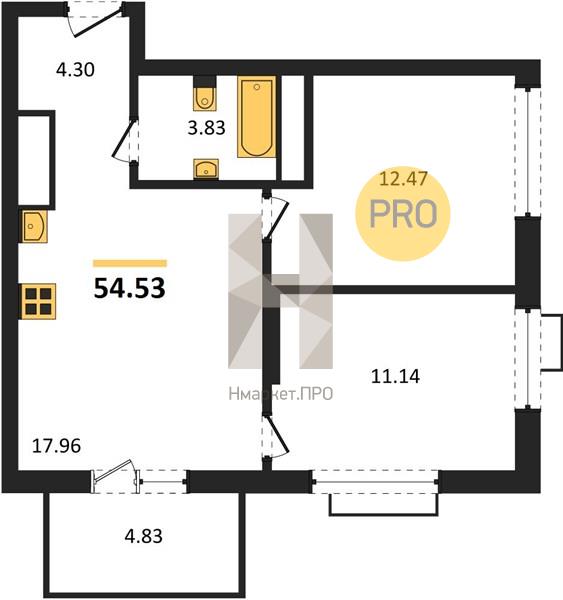 Квартира: 2 к 54,53 кв.м., 24 этаж в комплексе Ривер Парк, 4 очередь, корп.С3, сдача: 3кв. , этажей: 25, адрес Екатеринбург г., Щербакова ул., , Застройщик: ATLAS Development.