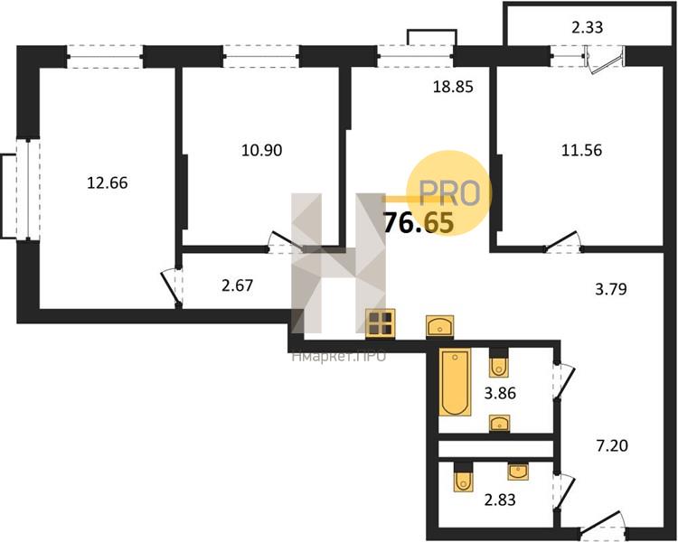 | Общая площадь: | 76.65 м2 |
