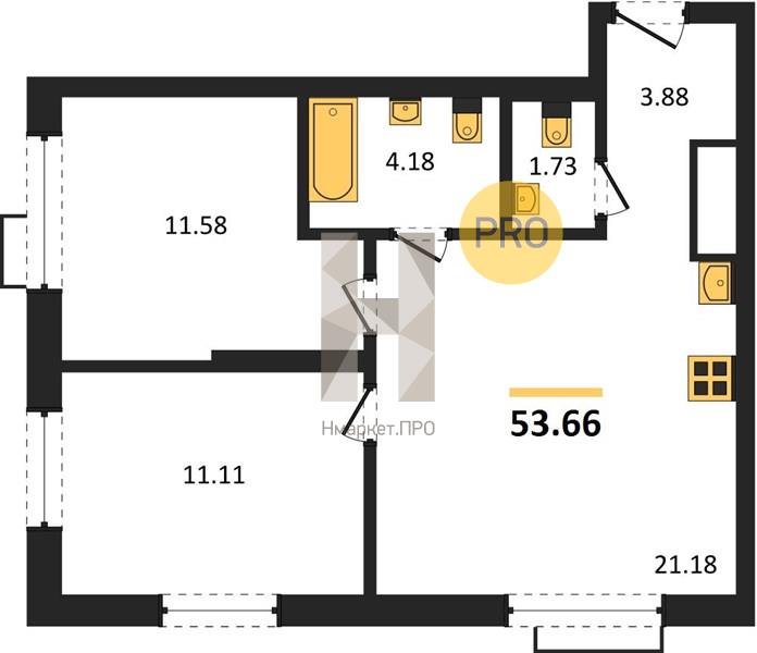 Квартира: 2 к 53,66 кв.м., 4 этаж в комплексе Ривер Парк, 4 очередь, корп.С3, сдача: 3кв. , этажей: 25, адрес Екатеринбург г., Щербакова ул., , Застройщик: ATLAS Development.