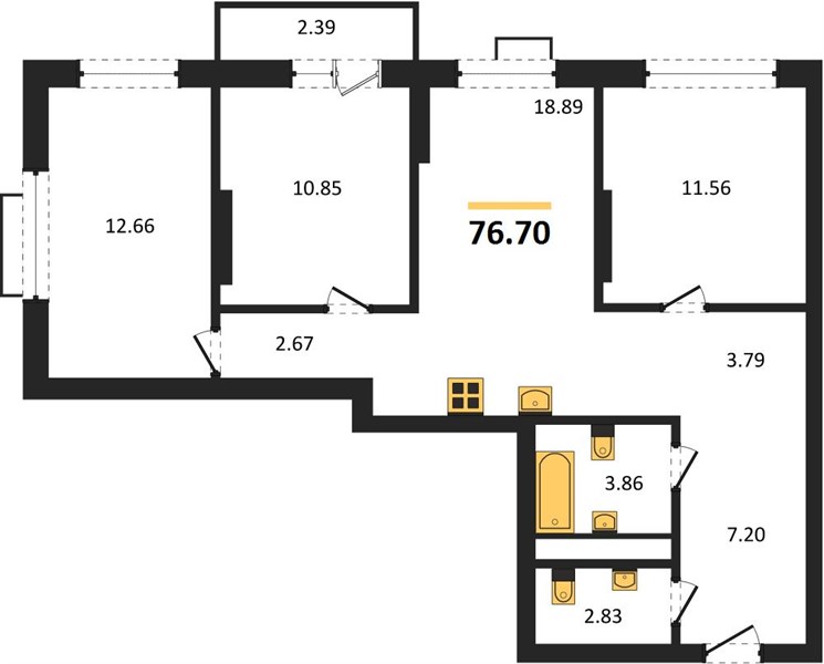 | Общая площадь: | 76.70 м2 |
