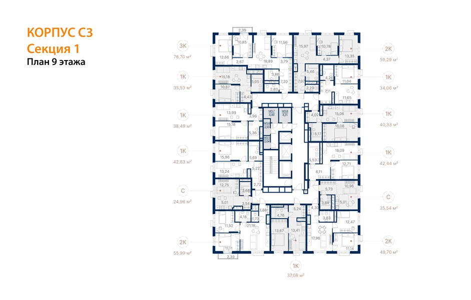 Квартира: 3 к 76,70 кв.м., 9 этаж в комплексе Ривер Парк, 4 очередь, корп.С3, сдача: 3кв. , этажей: 25, адрес Екатеринбург г., Щербакова ул., , Застройщик: ATLAS Development.