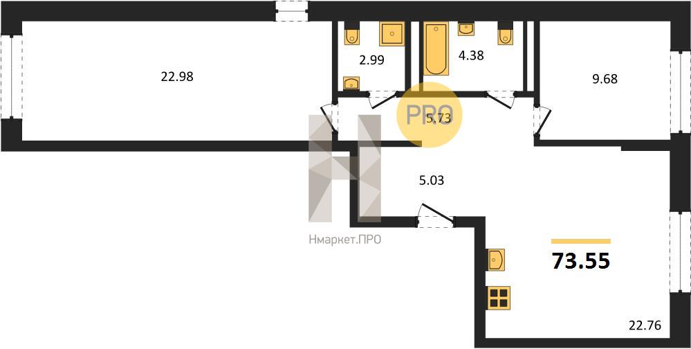 Квартира: 2 к 73,55 кв.м., 3 этаж в комплексе Ривер Парк 3, 3 очередь, корп.2, сдача: 2кв. , этажей: 24, адрес Екатеринбург г., Щербакова ул., , Застройщик: Призвание.