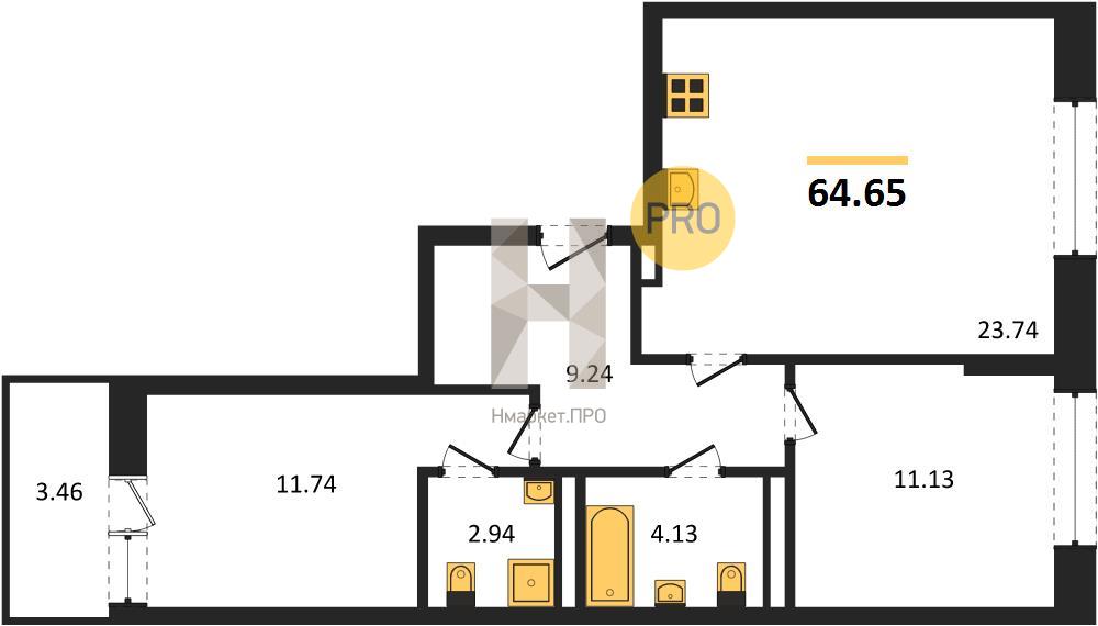 | Общая площадь: | 64.65 м2 |