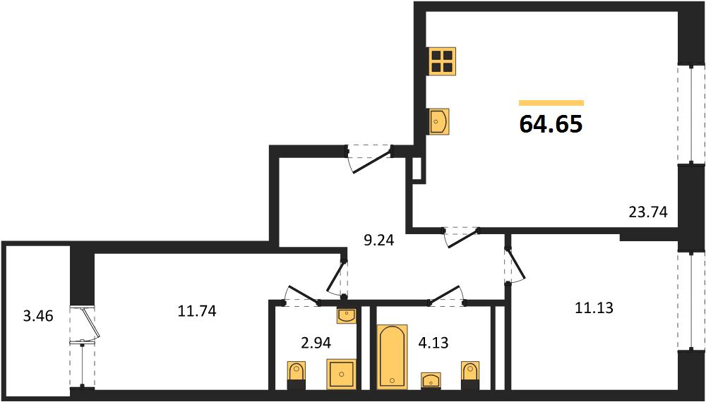 Квартира: 2 к 64,65 кв.м., 9 этаж в комплексе Ривер Парк 3, 3 очередь, корп.2, сдача: 2кв. , этажей: 24, адрес Екатеринбург г., Щербакова ул., , Застройщик: Призвание.