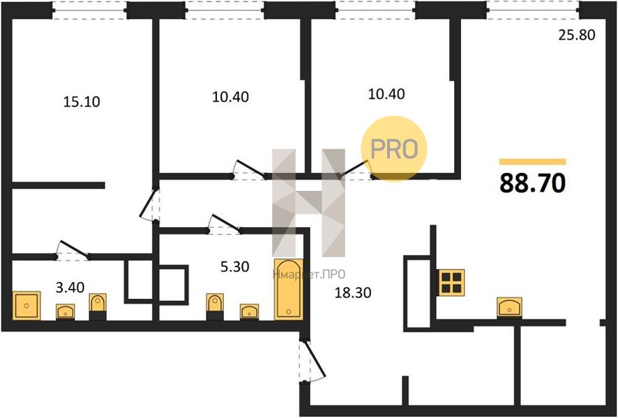 | Общая площадь: | 88.70 м2 |