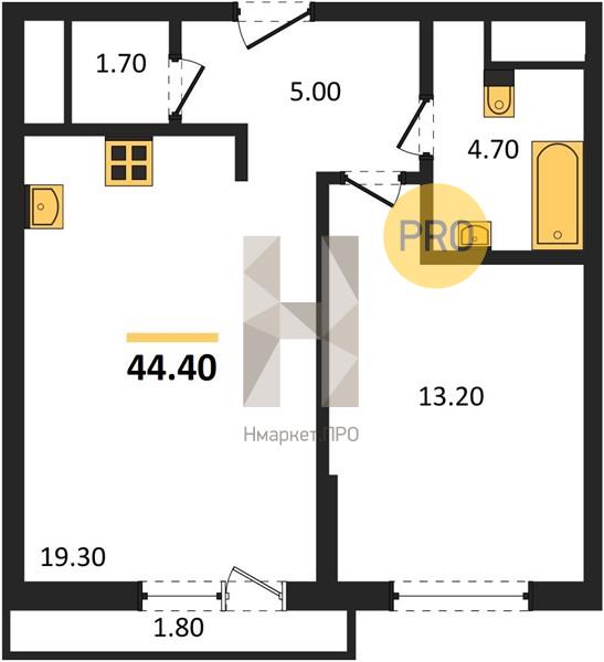 | Общая площадь: | 44.40 м2 |